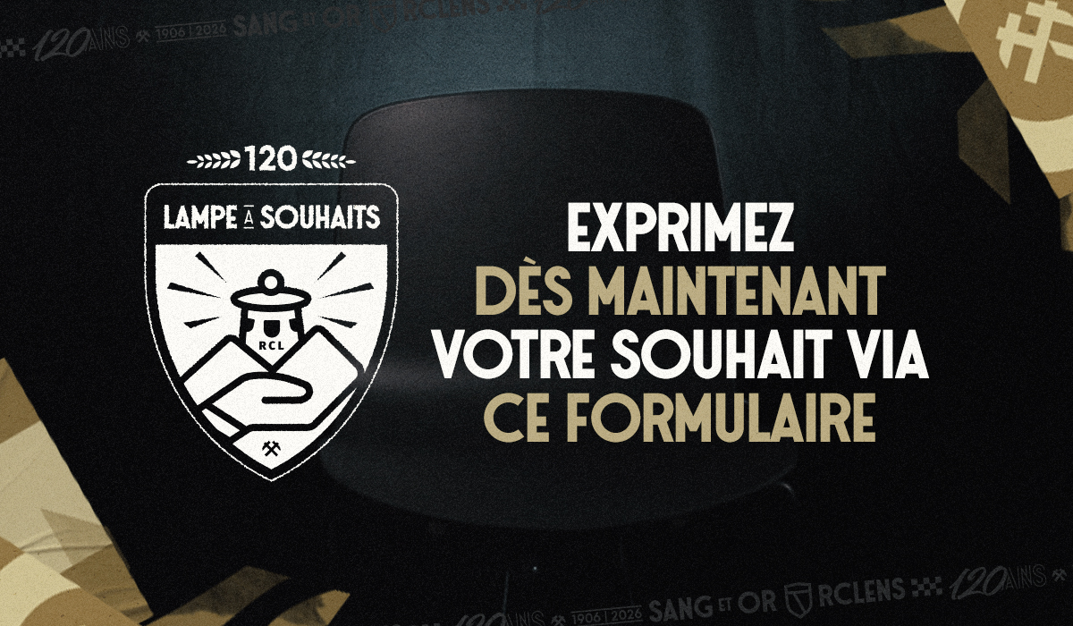Au fil de cette saison 2025/26, le RC Lens célèbre ses 120 ans. Et si le temps de l'anniversaire s'associe, d'ordinaire, à l'art de recevoir, le club choisit d'en inverser la symbolique afin de remercier ses supporters. À travers l'initiative « Lampe à souhaits », le Racing invite ainsi ses sympathisants à formuler leurs voeux, parmi lesquels certains prendront vie au cours de la saison.